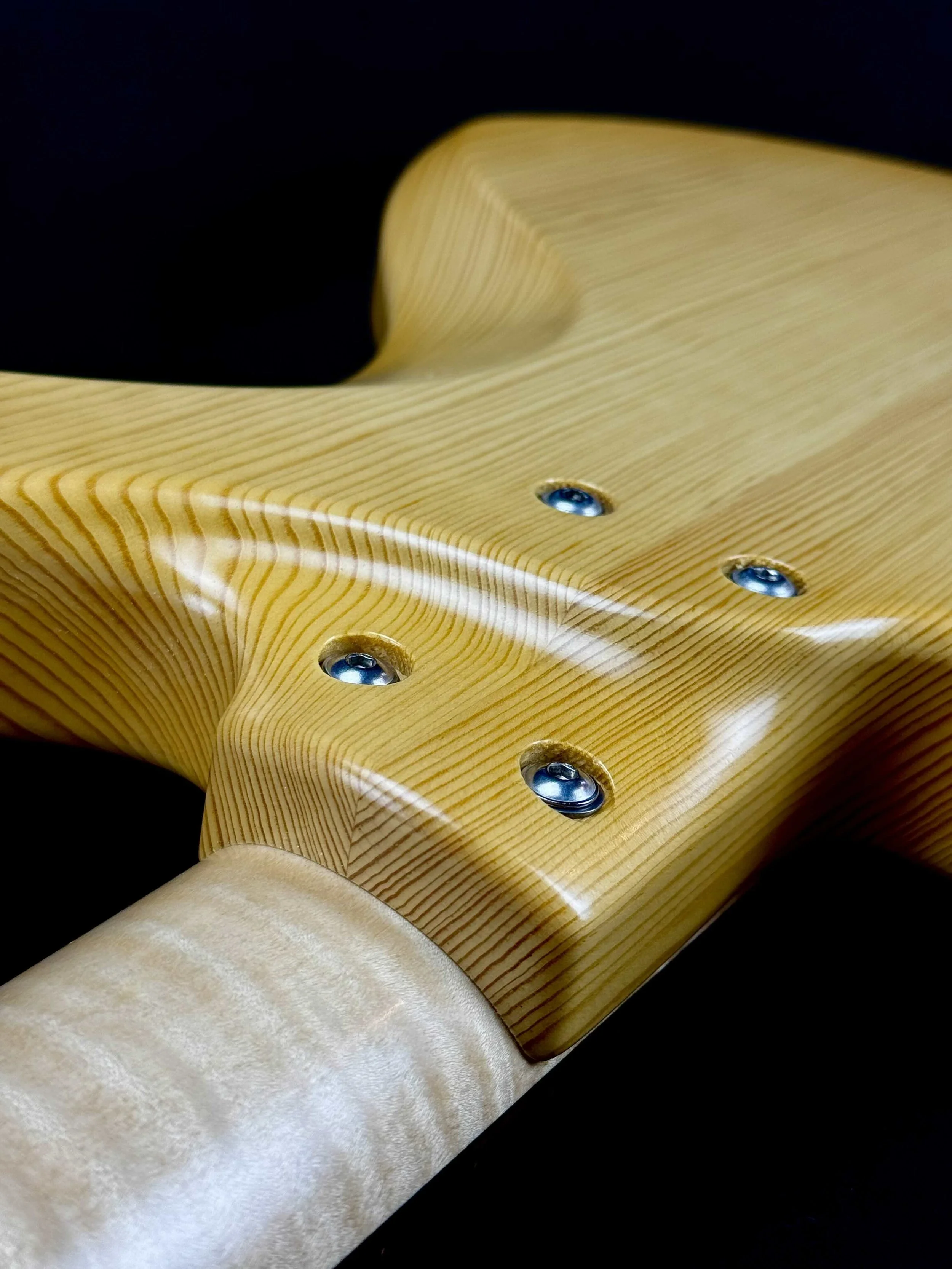 We’re excited to introduce the SustainCore Hybrid Neck design! Utilizing a torrefied Sugar Pine softwood core wrapped with a continuous C-shape of carbon fiber with a curly Maple outside skin, this neck is vibrant, stable, lightweight and resonant.